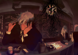 **r*さま、昨年もお世話になりました~!いろいろ悩みながら描いてますが、根っこには「お絵描き大好き!」の気持ちがどーんとあるので、工夫しながら描くのは楽しいです。もっとキリジャの二人をカッコよく描きたいですからね!なーん、私もあてげなことしとれんけど、気い張らんと遊びにきてってね(私の方言はかなりキツいので通じますか?笑)